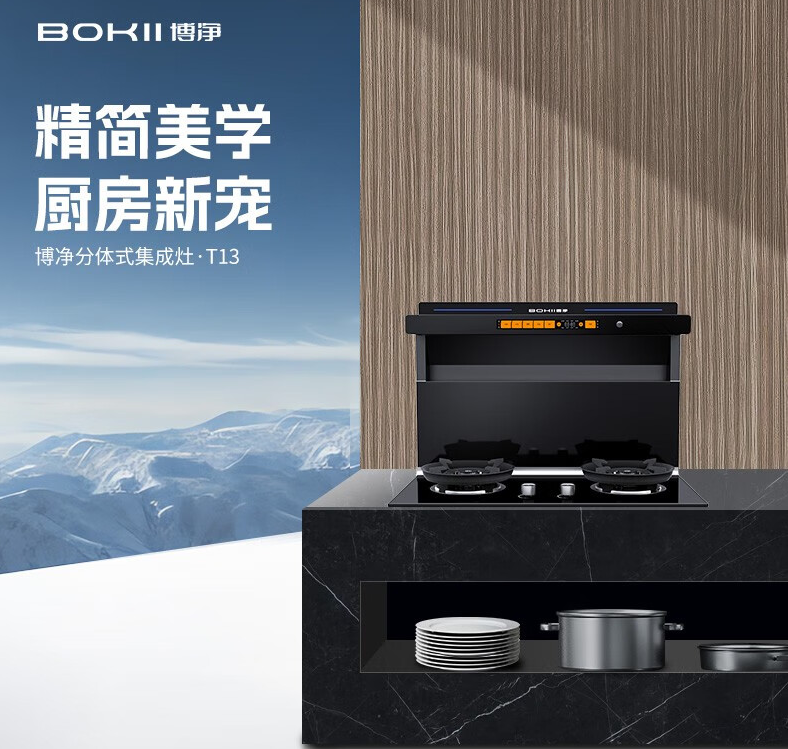 博凈分體式集成灶,在燒飯的同時,還可以科技智能炫酷操控,另外可以自由選擇不同的搭配款式。享受美食,全家吃的舒心,用的更安心。
