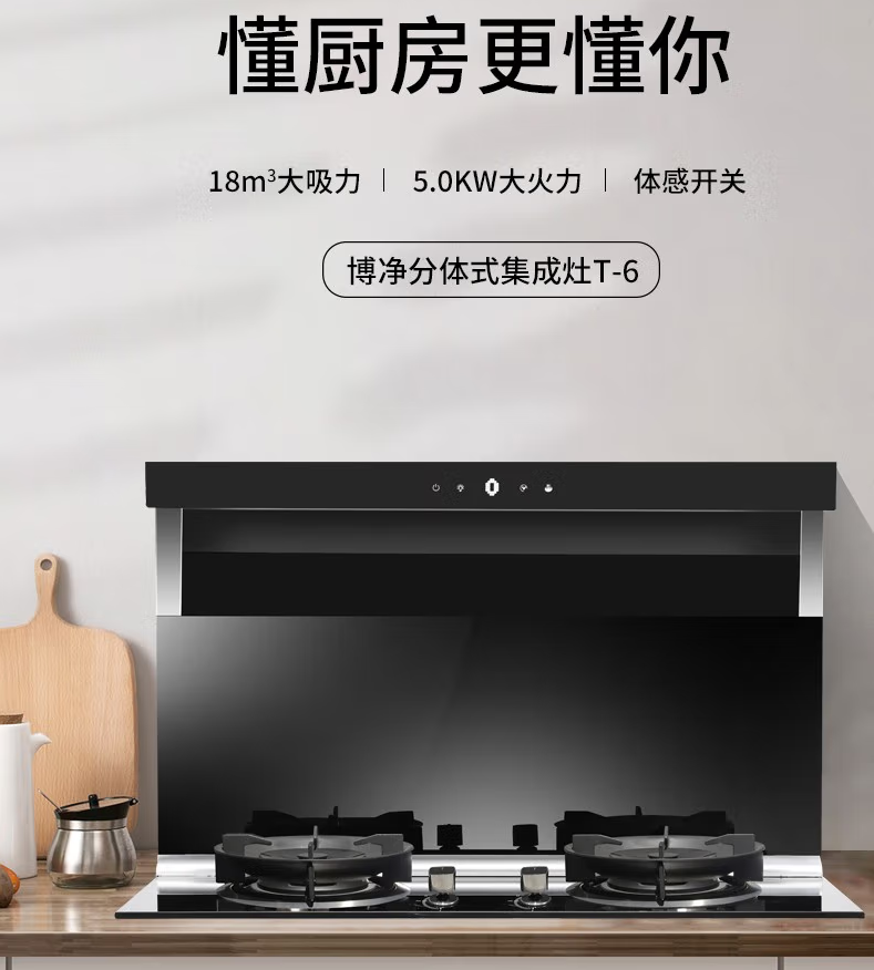 智能觸控設(shè)計(jì),堅(jiān)固耐用,開啟廚房智能新時(shí)代。巧妙搭配廚房好物,變換出風(fēng)格的大不同,刷新廚房的便捷度與高顏值,就選博凈分體式集成灶!