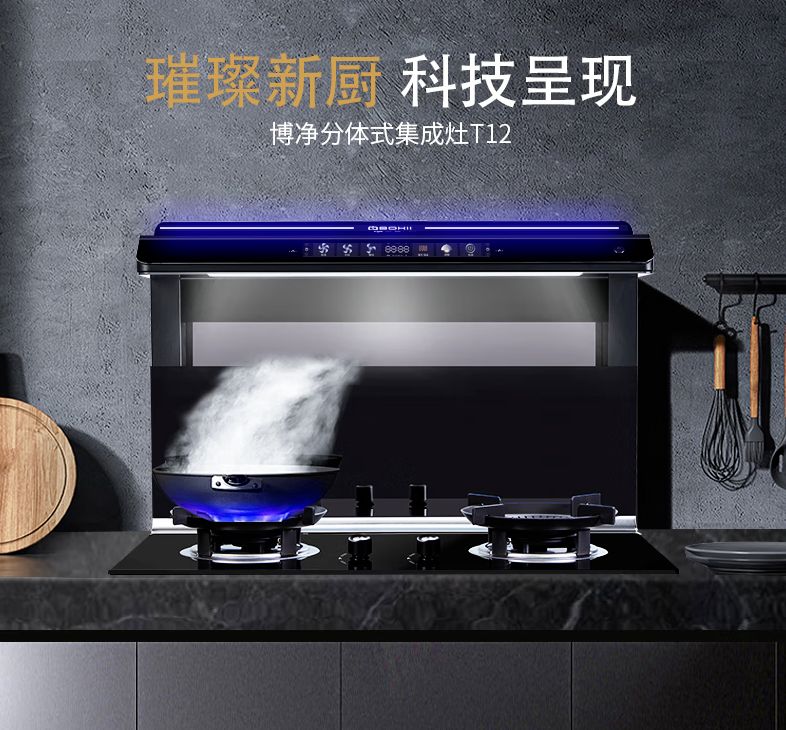 博凈分體式集成灶鋼化玻璃臺面采用鉆石切割工藝,防刮防燙防爆,一抹即凈??萍寂c智慧結(jié)合的博凈高性能燃燒器,讓你烹飪不再手忙腳亂,享受美好烹飪新體驗,精準火力助你秒變大廚,讓科技融入家的溫度。