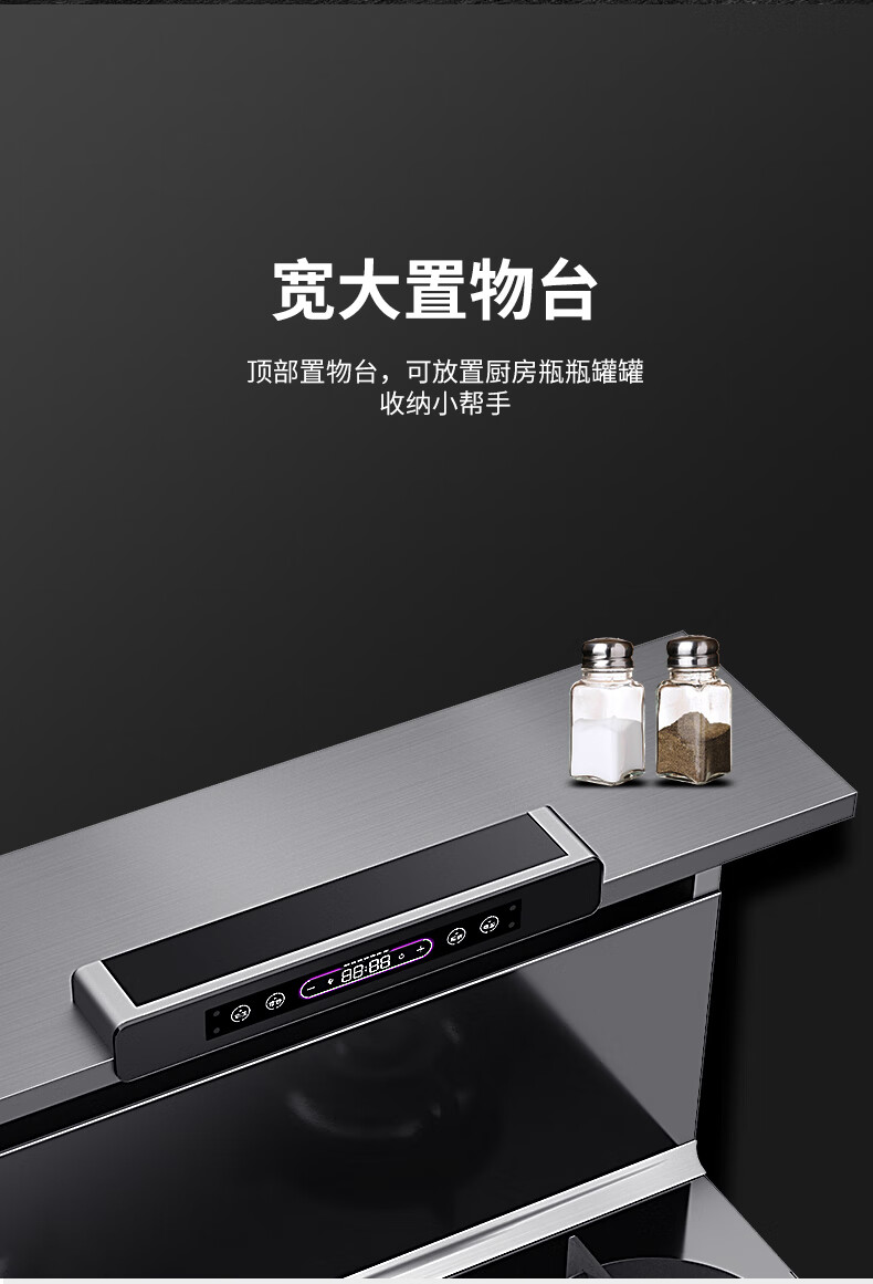博凈分體式集成灶打破傳統(tǒng)格局,塑造新集成廚房,重新設(shè)計(jì)集成結(jié)構(gòu),在頂部設(shè)計(jì)了一個(gè)恒溫?cái)n煙置物臺(tái),可以放置日常的調(diào)料品和美食,增加收納空間保留剛需,釋放更多空間。