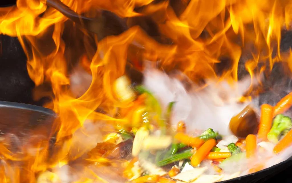 鑊氣是怎么來(lái)的?用猛火高溫快速翻炒使食材在極短時(shí)間內(nèi)變熟,整個(gè)炒制過(guò)程不過(guò)2-3分鐘,快速加熱使肉類外部又焦又脆,形成一層“殼”,里面的汁水由此鎖住,在很大程度上保持了食材的原汁原味。所以我們覺(jué)得經(jīng)過(guò)爆炒的蔬菜更加清脆爽口,肉類也更為勁道彈牙。除了口感,大火爆炒的方式也大大減少食材營(yíng)養(yǎng)成分的流失,保持食材的營(yíng)養(yǎng)價(jià)值。