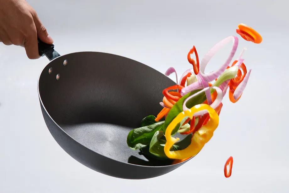 除了傳熱方式和油的種類不同,做菜時使用的鍋和產(chǎn)生油煙的多少也有很大關(guān)系,使用日常的炒菜鍋,鍋底較薄,會導(dǎo)致其升溫快、鍋內(nèi)菜品出現(xiàn)受熱不均的狀況,從而使油煙量增多。